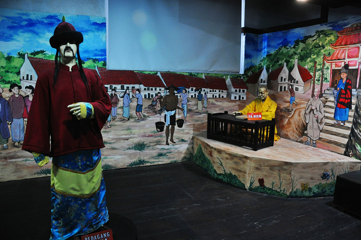 最精彩的陈列就在入口玄关的楼上,香料、白糖、石油,赤道翡翠东印度群岛丰富的物产吸引着中国、欧洲、日本等一批批的外国人在这里你方唱罢我登台,展厅用一个个生动的场景介绍了这些外国人与当地人一道上演的一场场历史大戏。