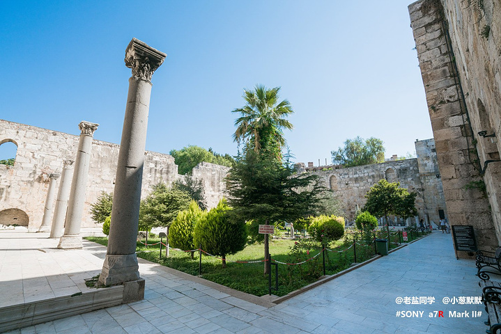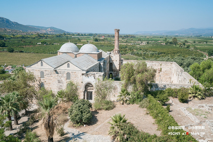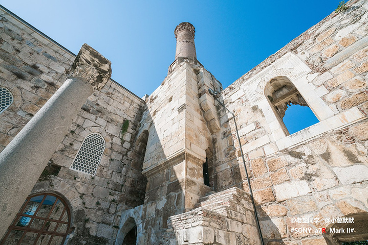 小镇半山腰的伊萨贝伊清真寺并没有什么名气,想来这里看看也是因为山下的阿尔忒弥斯神庙。据说阿尔忒弥斯神庙在损毁后,大量的石材被当地人转移,最后成了伊萨贝伊清真寺的一部分。 清真寺没有伊斯坦布尔的那些恢弘,红色的石墙很有特点,院内堆放了一些破旧的石板,有一些上面刻着罗马的文字。不同于作为景区的那些清真寺,伊萨贝伊清真寺是作为小镇日常礼拜使用的,庭院内有一个小小的花园,中间是方便信徒清洗的水龙头。