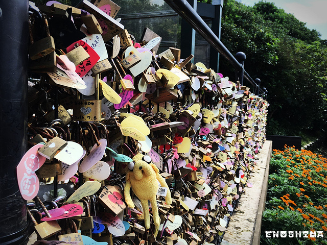 离开岩屋回到灯塔那里的岔路口,改道去看龙恋之钟。据说跟伴侣一起在这挂上同心锁,然后一起敲响钟,就能永远在一起神马的。