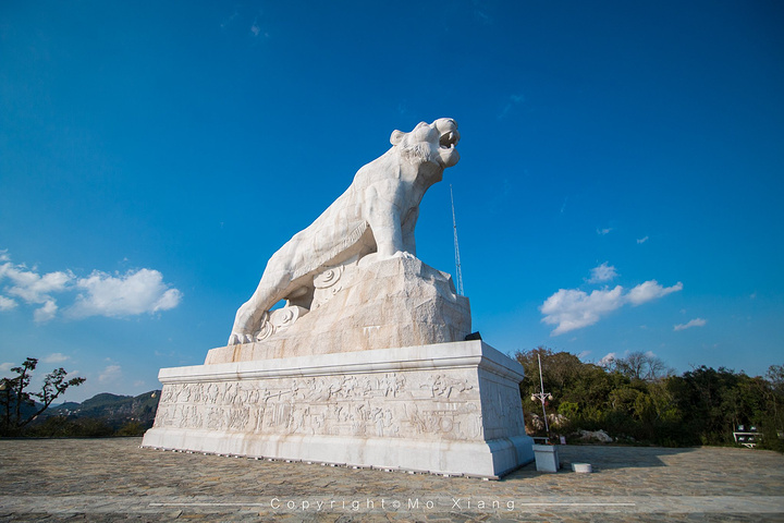 在可邑小镇旁道路的右侧山顶又一座世界上最大的白虎雕像:虎啸山林。在石雕下面的四个方向雕刻着关于彝族的各种传说,不过虎自千百年以来都被彝族人敬奉为原始图腾,这也成为了可邑小镇彝族人的守护神。