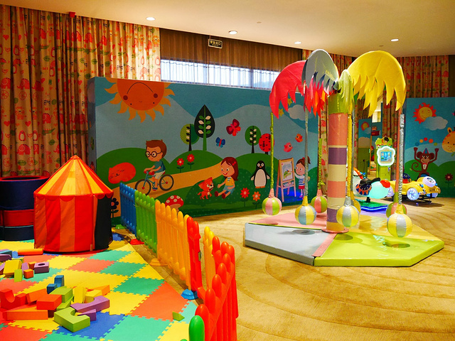 带孩子们去活动中心畅玩,这里共三层楼,儿童乐园在最高层,里面有淘气堡。