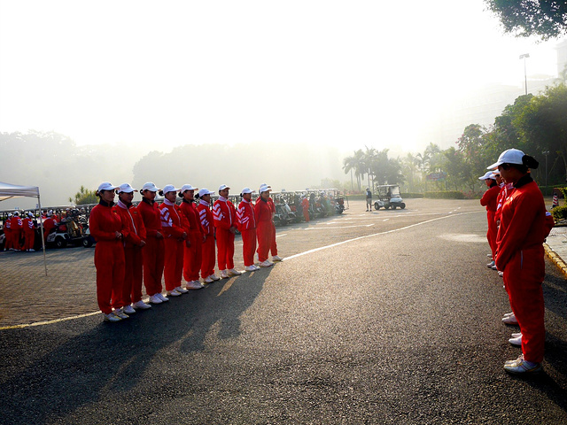 第三天,在鸟鸣中醒来。晨光熹微中,奥拉沙宝球场,球童已整装待发,开启一天的工作。