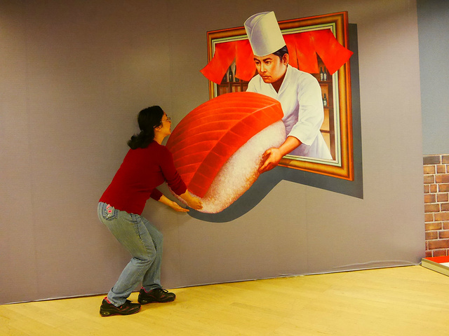 在3D美术馆,各种摆拍,大人小孩都玩嗨了。