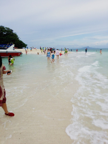 在poda上留30分钟后就去另一个岛,Tup岛,这个岛最出名的就是退潮后会显出一条白沙滩路出来连接两座山。 沙又白又细,相当的舒服。我们在淘宝买的浮潜袜都没有穿。