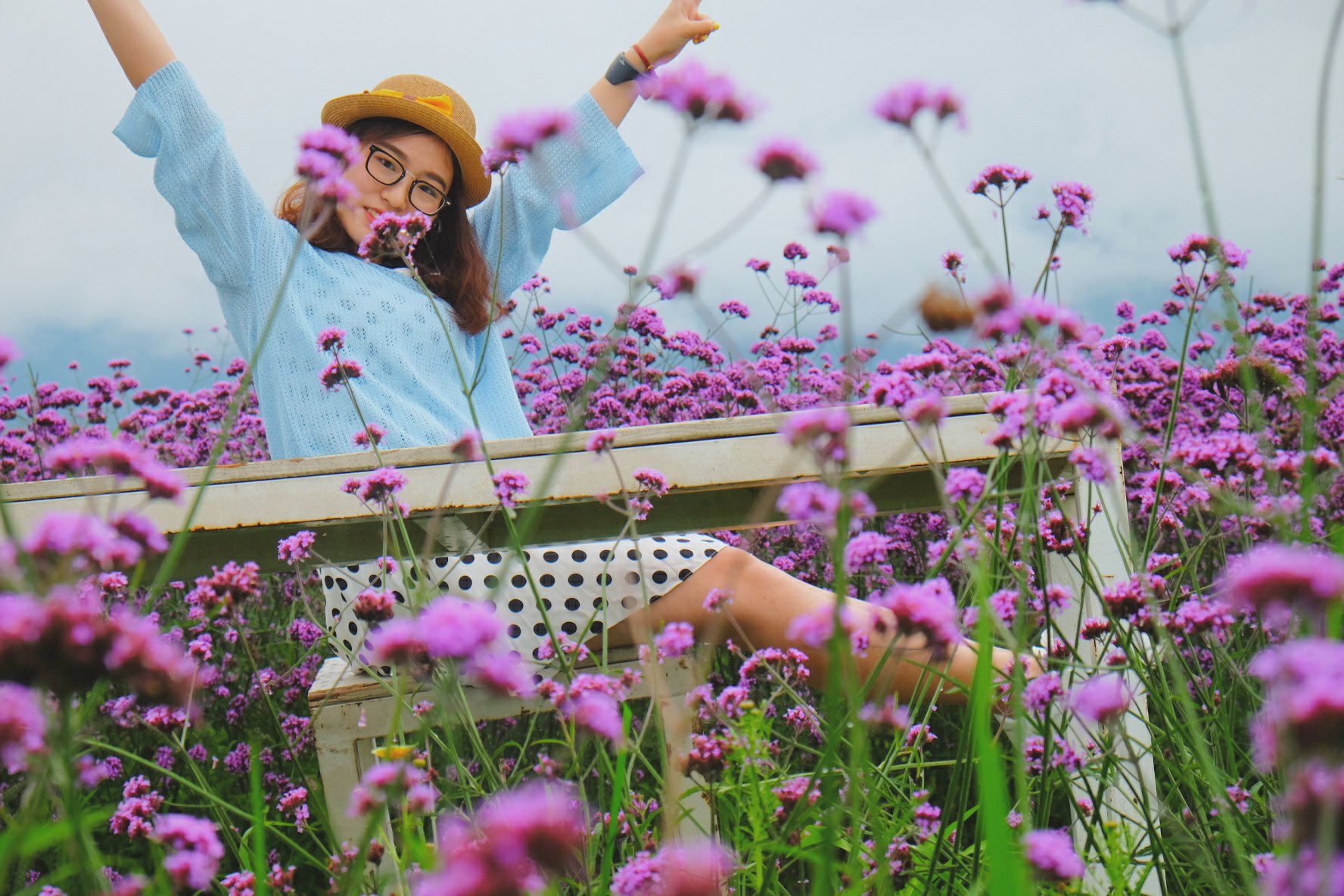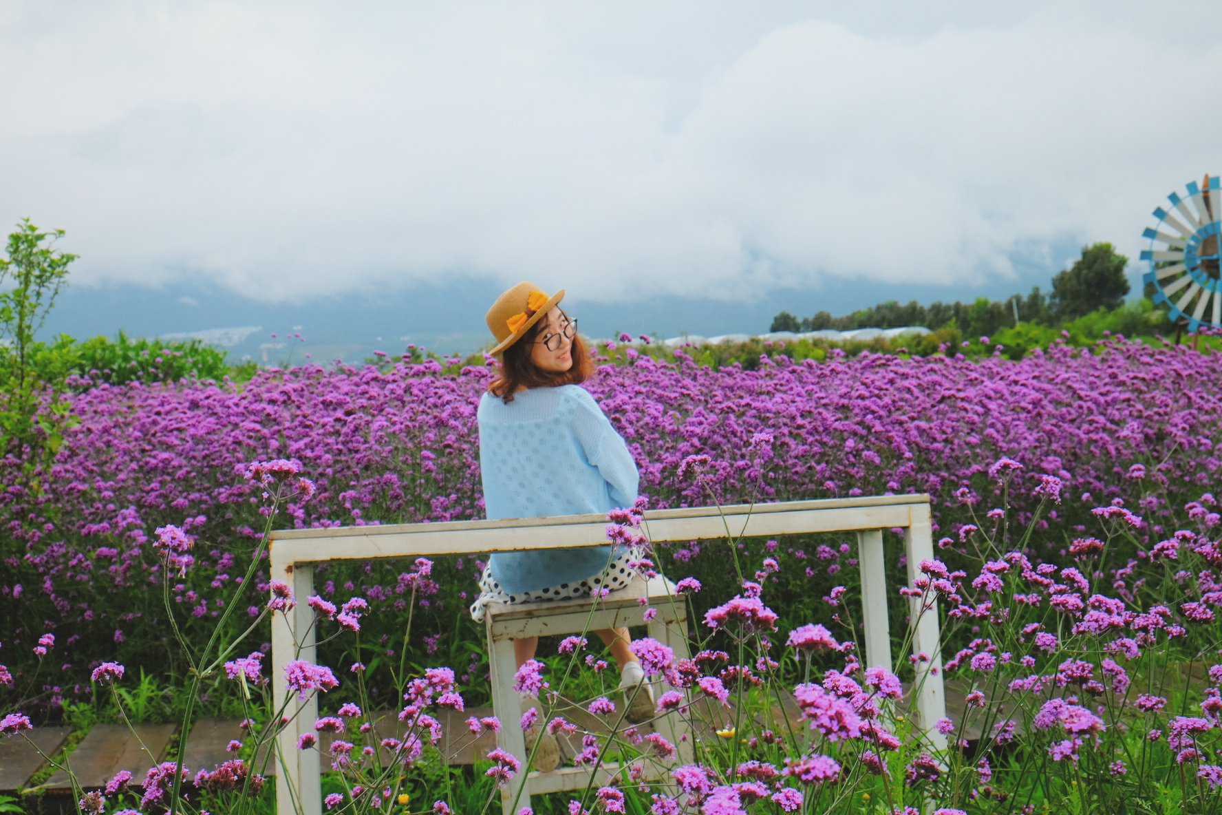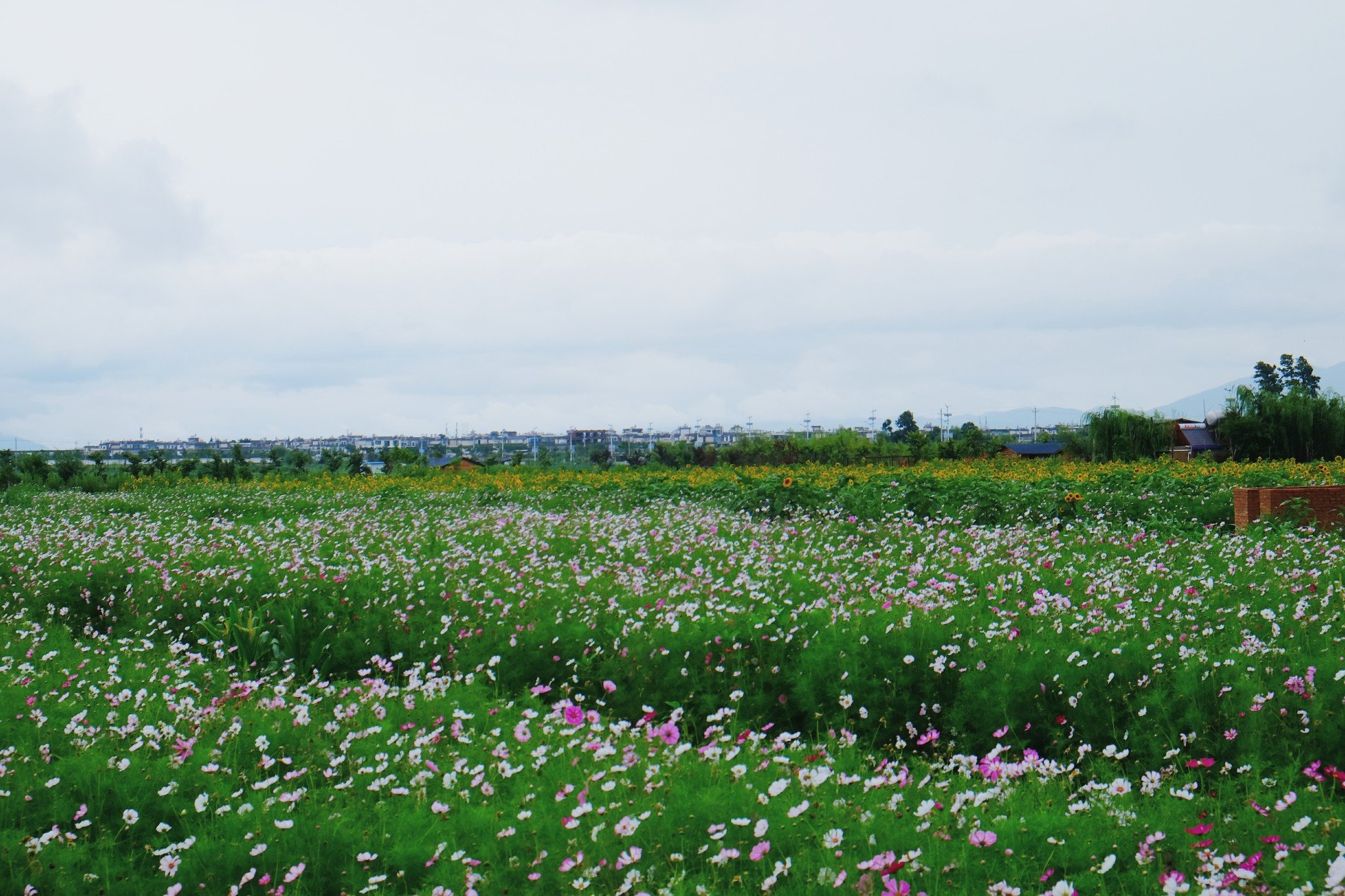 在经历了好多张失败的花海照片之后,终于发现了这个白桌子,白桌子跟洱海配,他跟花海也很配哦。