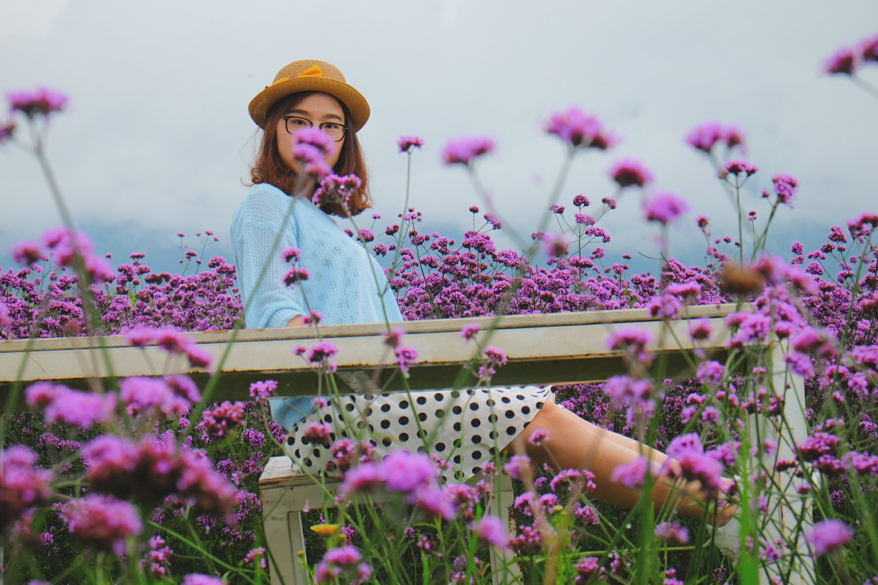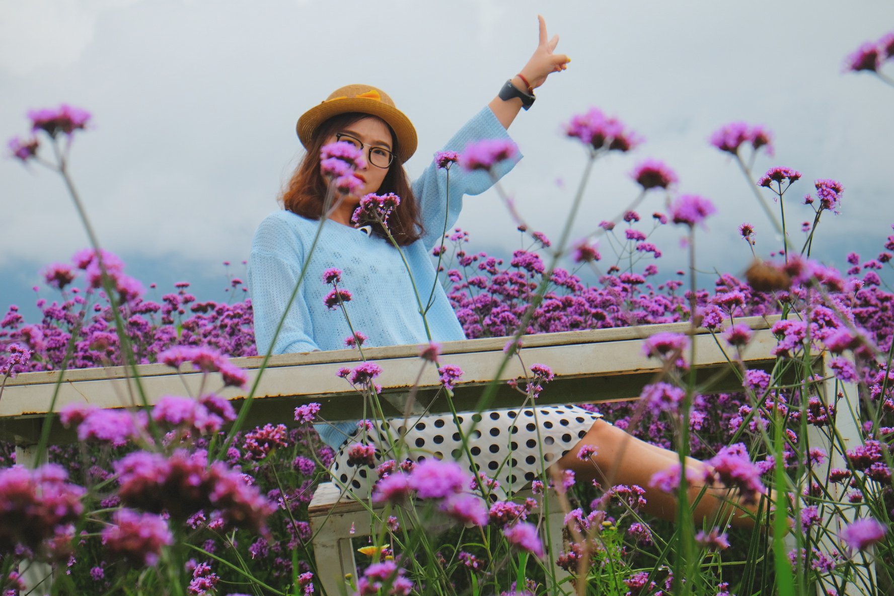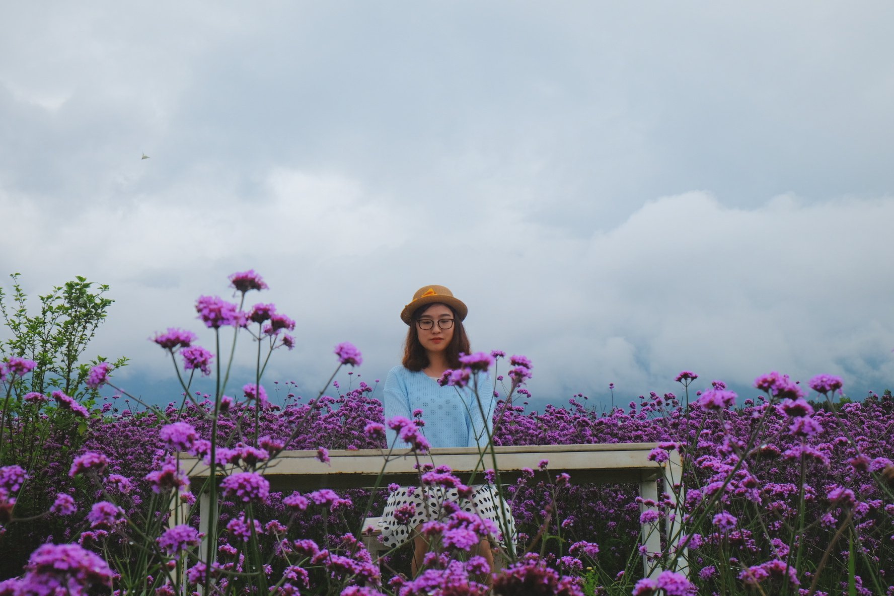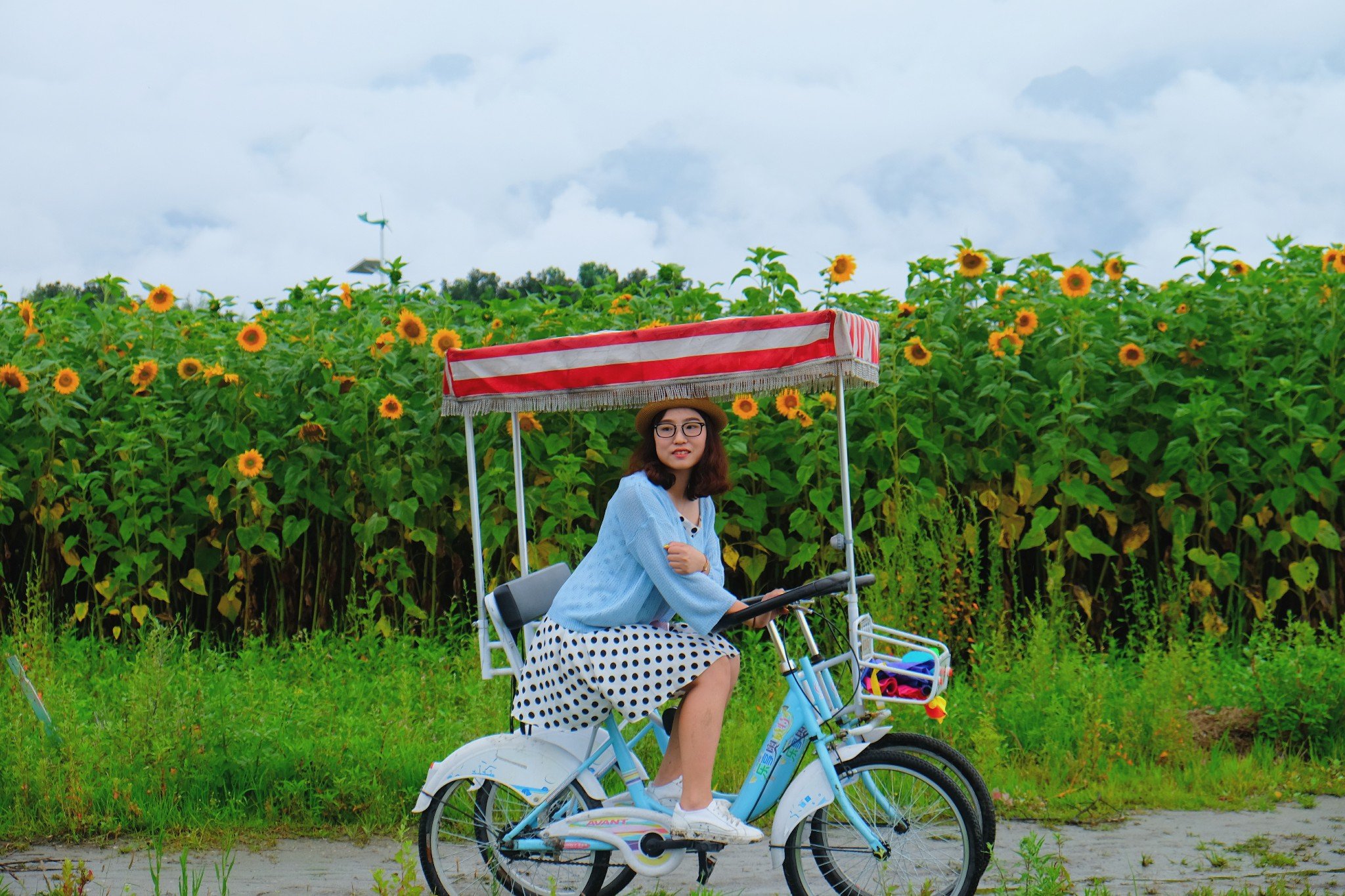在经历了好多张失败的花海照片之后,终于发现了这个白桌子,白桌子跟洱海配,他跟花海也很配哦。