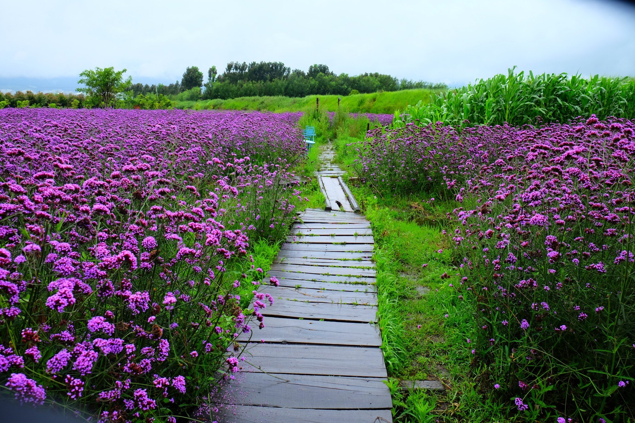 终于,我们到了,进门的时候没注意坡度一路冲到门边的草丛中了,看到了想要看的紫色马鞭草,同为紫色,我觉得他比比他大牌很多倍的薰衣草好看多了呢,也更适合拍照。里面有好几对拍婚纱照的新人,拍出来应该非常漂亮吧