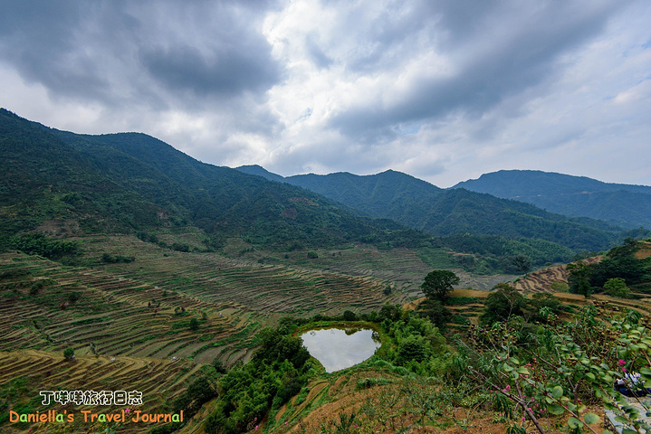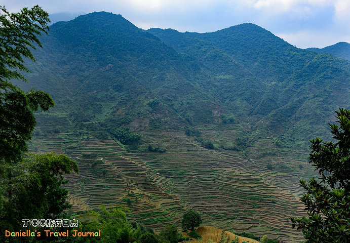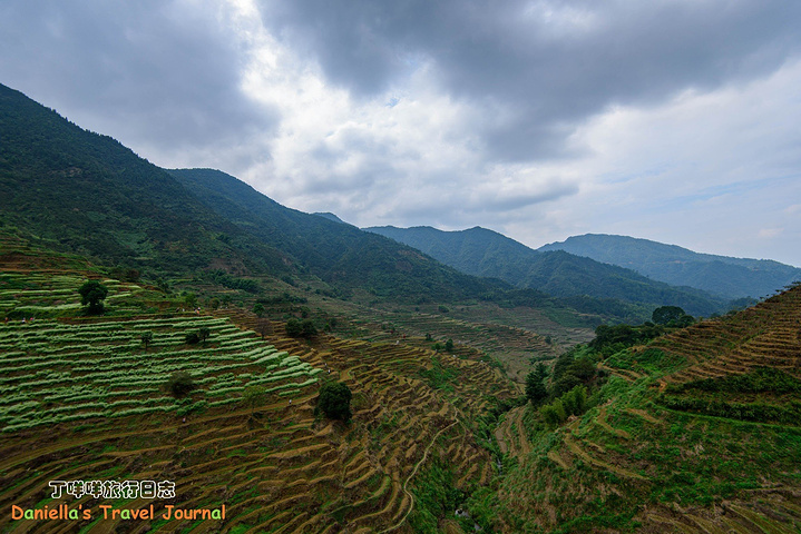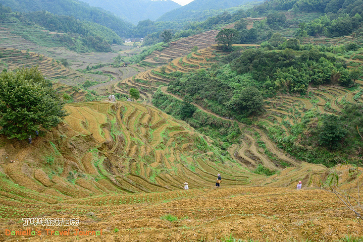 梯田上兮兮两两的务农人