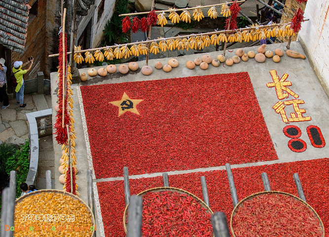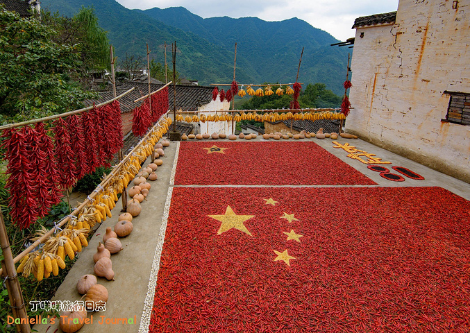 去篁岭的时候,正值国庆假期,村民们连晒秋都晒出了爱国情结。