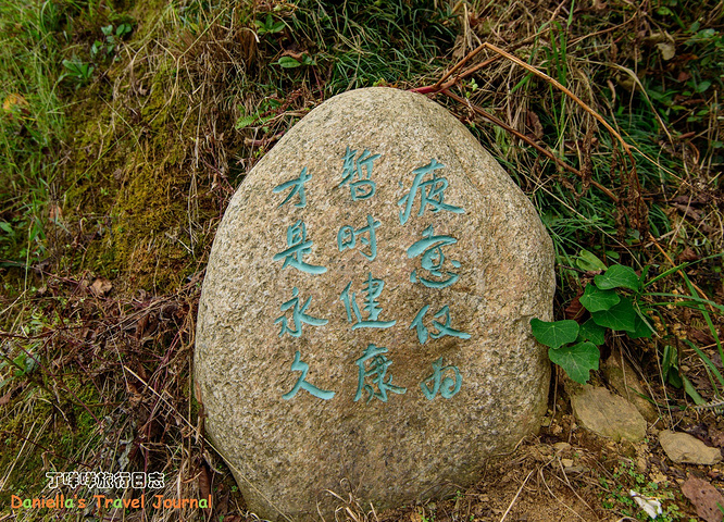 从山谷的另一侧徒步回来,看到这块碑文:疲惫仅为暂时,健康才是永久。累了,加把油,继续爬啊