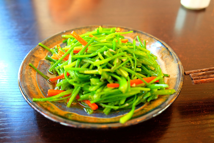 水性杨花,洱海里的水生植物,真的炒鸡好吃,反正我在两天内三顿饭都点了这个,软软粘粘的,如果不喜欢这种有粘液的蔬菜可能不会喜欢,又很清香,第一推荐的食物。不过不推荐在这里点这道菜,每一家餐馆都有,而且清炒也没什么技术含量。