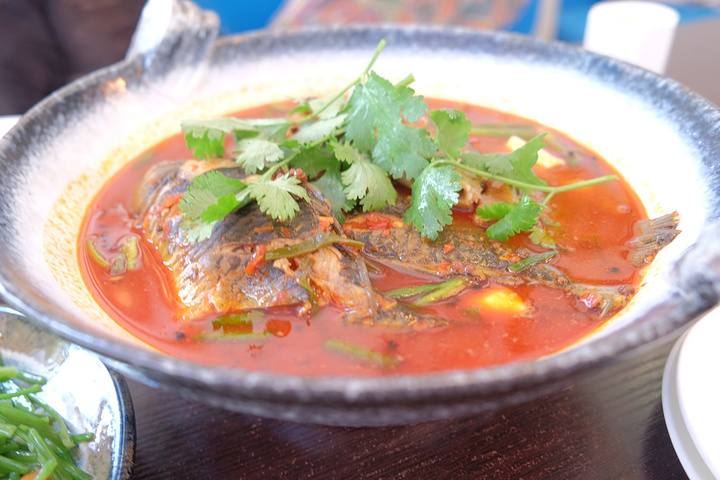 酸辣鱼,实在是挑不出来什么菜,感觉都是华而不实的菜名,就点了这个当地特色,但其实我很拒绝鱼和酸的食物。吃了一口发现这根我们传统的酸辣味很不同,酸不是醋的酸,是酸木瓜,有种泡菜的酸但又不太一样。后来也点了一顿酸辣鱼,没这个好吃,这个推荐这里吃,因为酸辣鱼还是有技术的。
