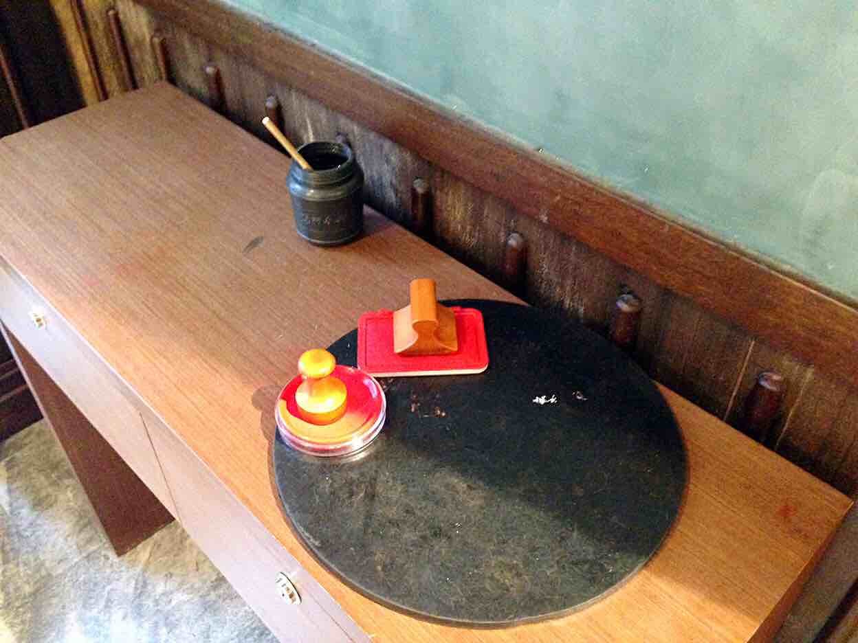 5、邮局内没有凳子可以坐,有柜台可以写明信片,另外提供笔和胶水。