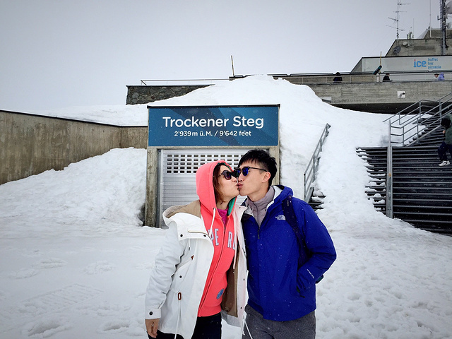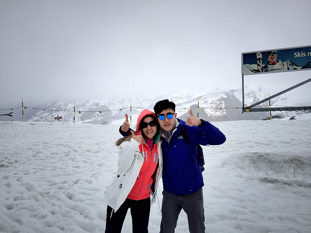 上到Trockener Steg,工作人员说不能上去了。马特洪峰关闭了。我们只能到这外面留个影,好歹也算看到了雪吧不过外面真的好冷好冷