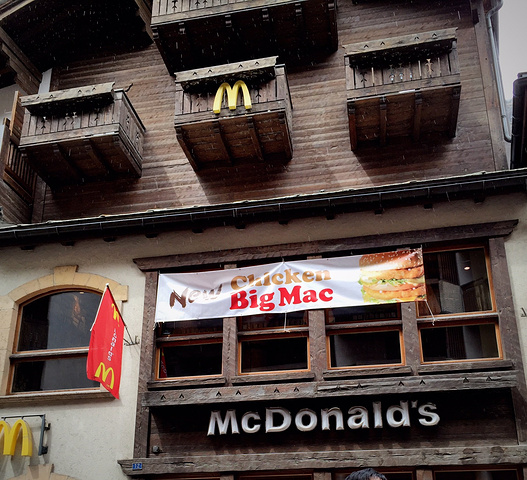 从雪山下来,急需补充热量。该试试瑞士的麦当劳了吧。