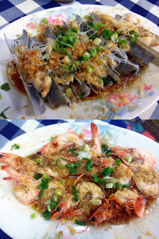 亲们注意了,看到价格是118两款,158三款,208四款,258五款的,我都不推荐,因为真的不新鲜,不新鲜,不新鲜,而且超难吃!看卖相都觉得好差了,作为沿海地区吃着海鲜长大的吃货,虽然对离岛的海鲜餐没有太大兴趣,但还是试一下吧,结果很失望。应该捞上来就已经死了或者放了很久,想用蒜蓉和加重的酱油味掩盖,很可惜,味道可以掩盖,口感无法改变,一咬下去就是霉烂的感觉,都吃不下去了。另外有几家贵一个档次的,看样子新鲜一点,所以钱包和味道还是自己衡量吧。