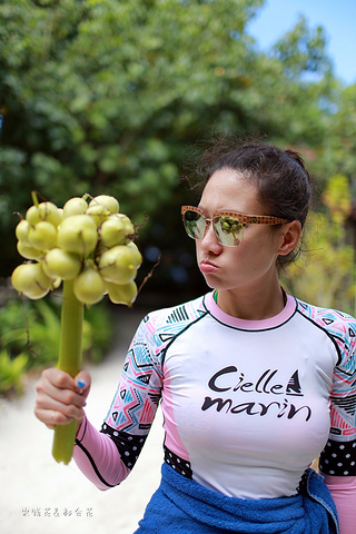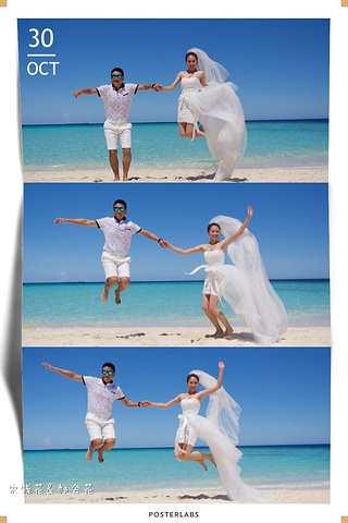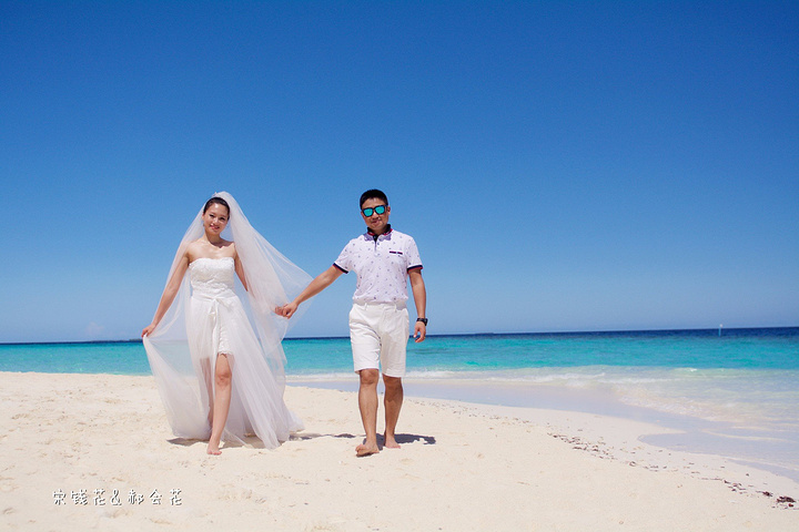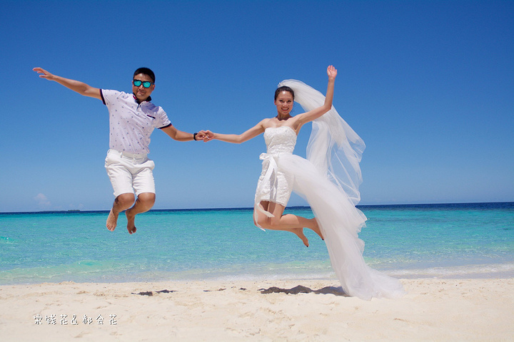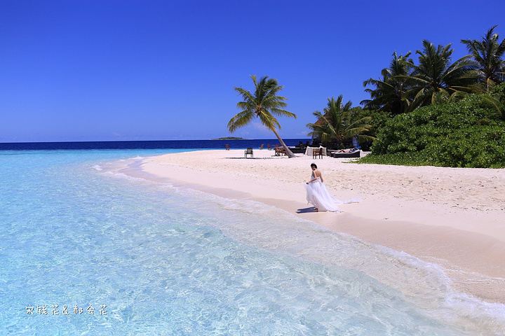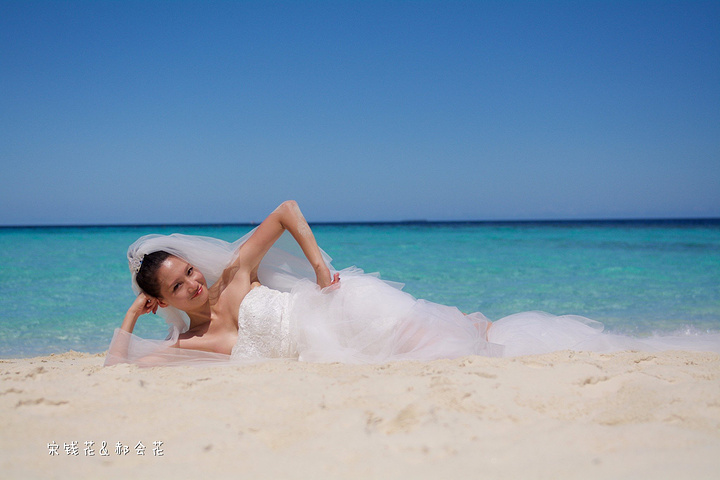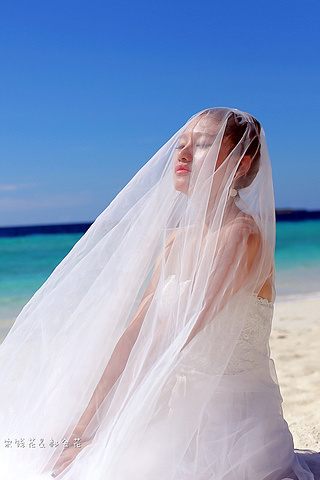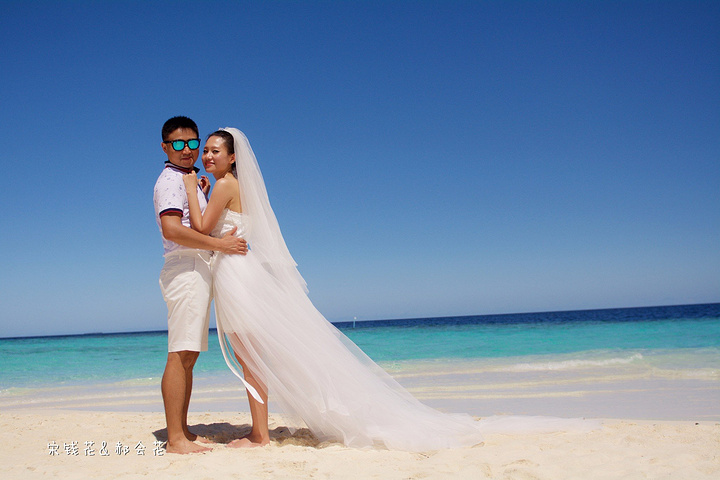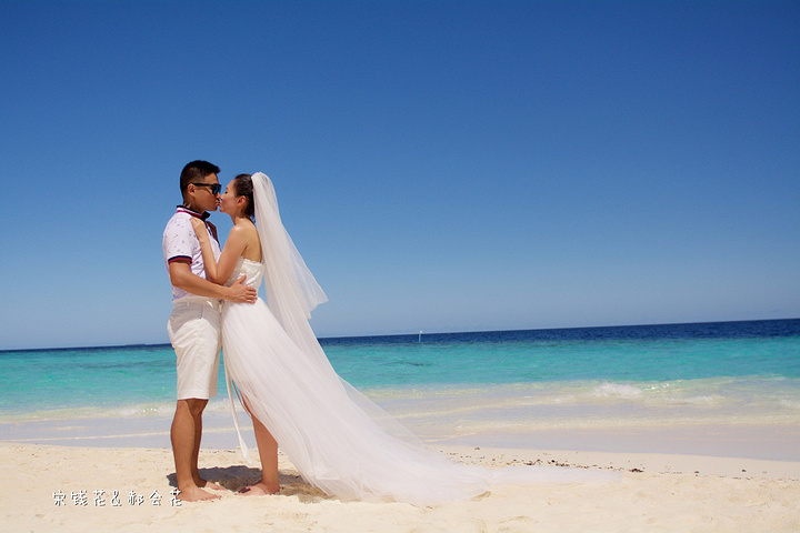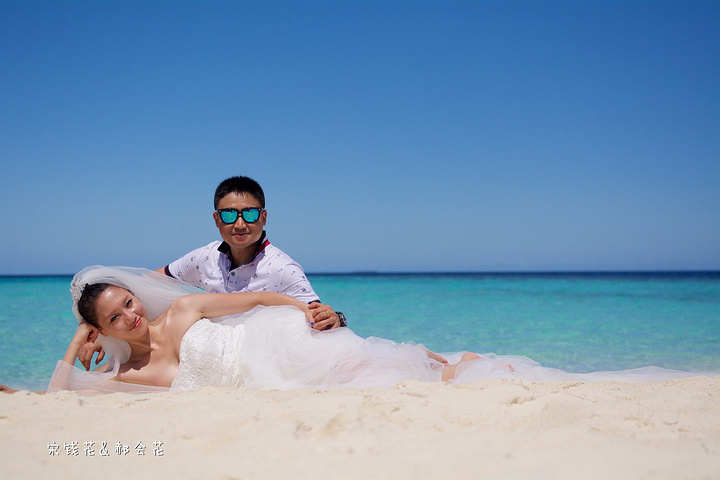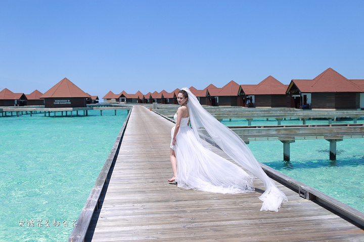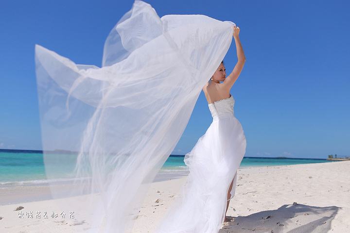 凌晨四点多,哗啦哗啦的声音吵醒了我,走到露台一看,瓢泼大雨啊,瓢泼都不能完全形容了,简直是盆泼!心里不免为预约的跟拍着急。早上6点钟醒了(时差关系,睡不了懒觉)出去一看,万里无云有没有,岛上的天气真是变幻莫测! 早餐后我们先在门前的沙滩上拍了一些照片,发现风好大,婚纱照真的有点HOLD不住。