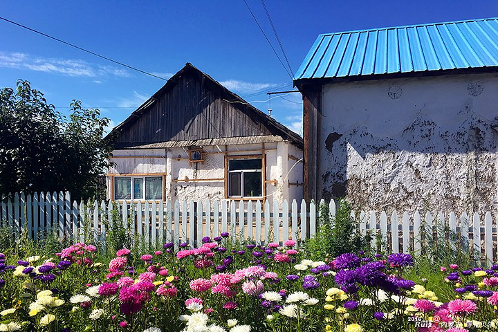 临走时,被镇子里的鲜艳小花和俄式建筑吸引,驻足留影!