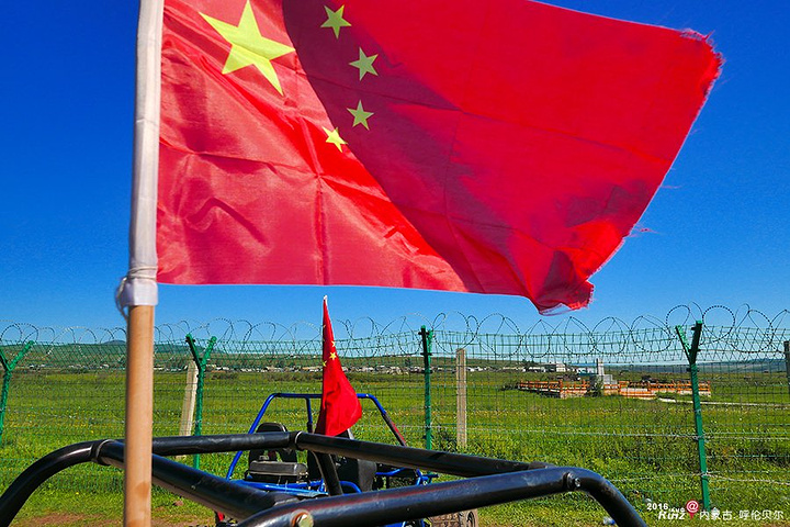 这片草原的东北方向,是界碑,已经被铁丝网封住,不能近身,可以走过来,也可以开车骑马玩的时候,过来拍1下