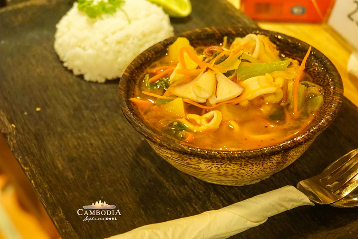 在Otres Beach上,吃饭的选择其实并不太多。横竖左右都是相邻几家客栈的餐厅。这些客栈大多数由西方人经营,所以口味也多偏重于西式。 我们所在的TAMU Resort的餐厅,据说厨师是在法国学成归来的。各种摆盘、服务倒是很讲究的,但我们最爱还是柬埔寨特有的Fish Amok