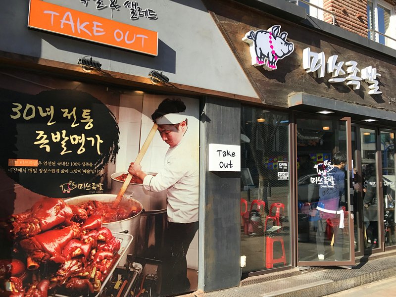 传说中的弘大猪蹄,盛传好吃到吞手指,说真的,排队超级多,cindy姐姐去的时候排到64号。