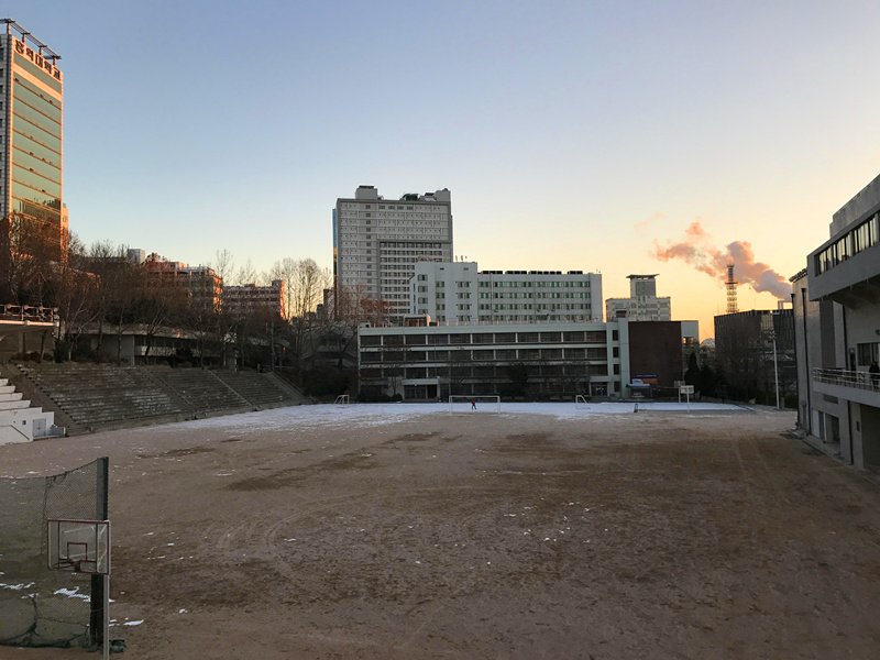 可实际的土操场,果然一切在韩剧!!旁边还有喷过的大烟筒