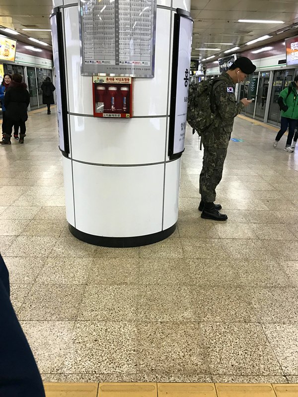 弘大地铁站遇到的大兵哥哥,虽然不太帅,但是酷酷哒,很Man,有点儿像太阳里的男二