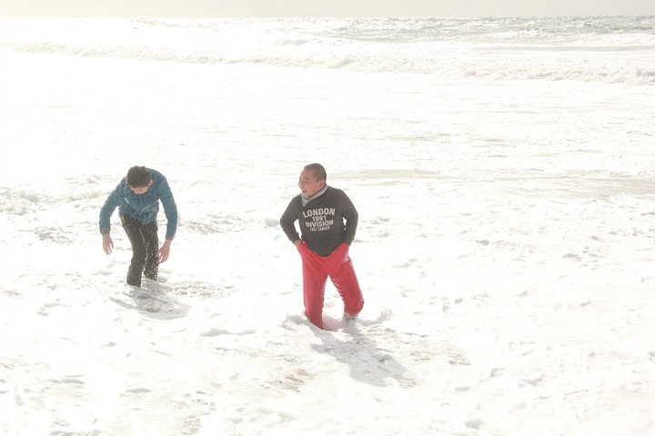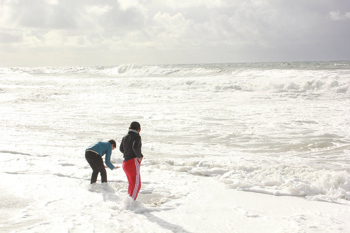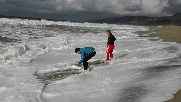 反正鞋子和裤脚都湿透,索性站在海浪里逍遥自在。