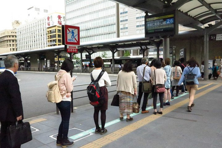买完票就在车站前面的公车站台排队啦,每一路车都有独立的站牌和显示器,你可以看看你想去的地方要搭乘哪一路车,或者提前在google earth上面查找。