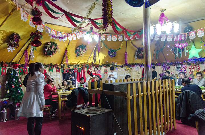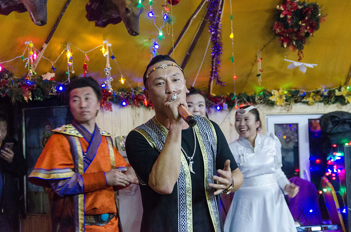 屋外零下二十多度的严寒,屋内就像暖春一般温婉,一边涮着火锅,喝着酒,一边看着表演,跳着舞,当然我没有碰酒,好在此行团长也不喝酒,有个伴呀
