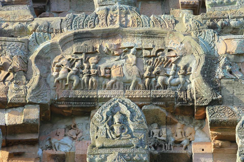 很多人欣赏吴哥窟 都会被它的门楣所吸引,帕侬蓝神庙也不例外。无论是纤细飞舞的飞天,还是湿婆神 毗湿奴等婆罗教众神,石刻可以把他们表现得淋漓精致,令人叹为观止。不得不感叹古代高棉人的艺术想象力和创造力。