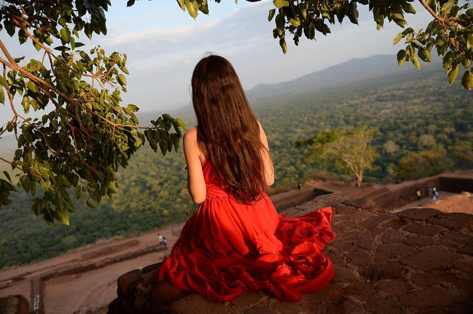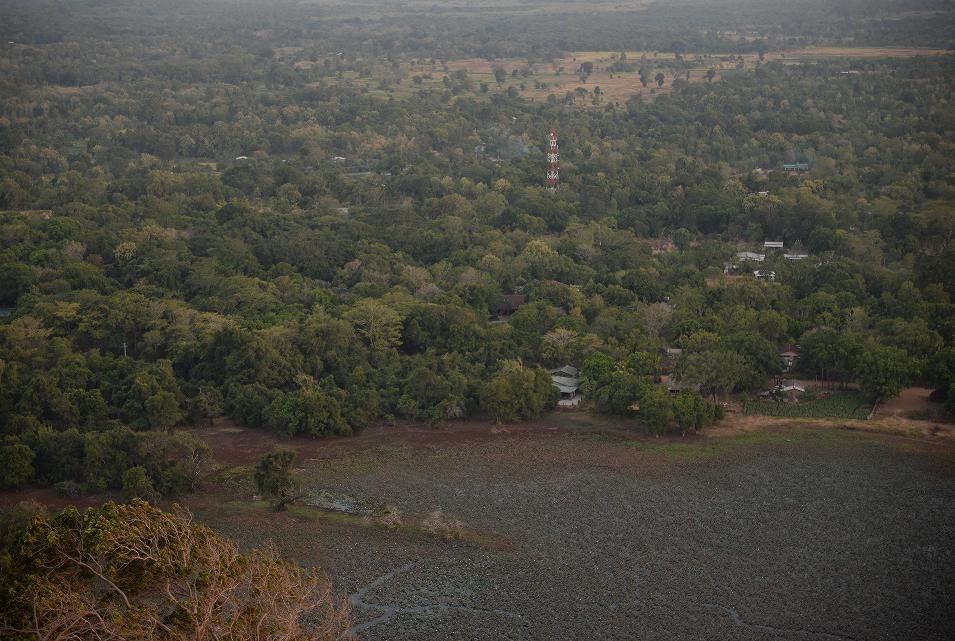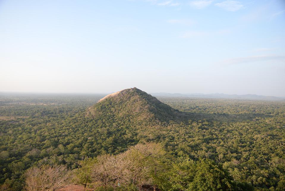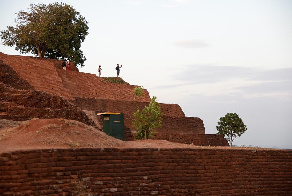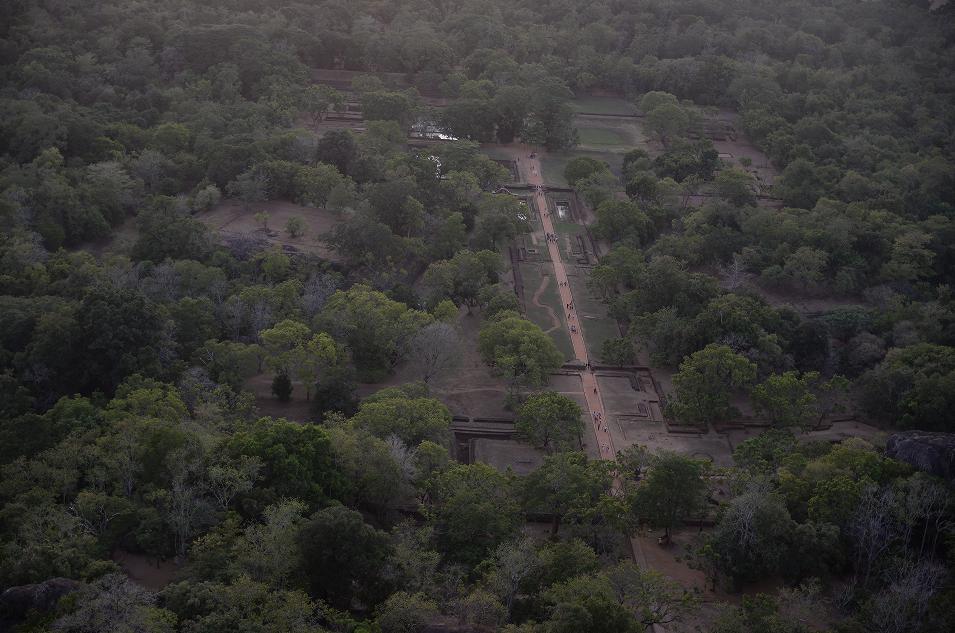 终于到了岩顶,空中宫殿已经被毁坏地接近于无,放眼望去,狮子岩就像一片热带园林中的孤岛,来时路上的人,如火柴一样挪动,一览众山小的成就和喜悦还是有的。只是这里的妖风太强劲了,被风吹了一个小时的头发,需要一瓶护发素来安慰。总的来说,时间OK的话,狮子岩还是值得来一趟的。