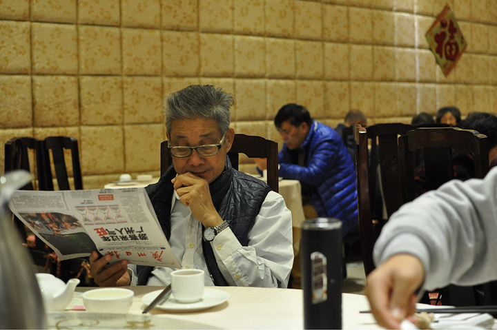 这家是老字号了。因此附近的广州市民也在此用早茶。一张报纸(好久没看到纸质的报纸了),一份点心,一份茶水,一个朋友。这是一种生活方式,也是一种生活态度。