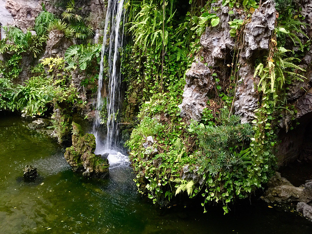 还有一帘瀑布。水声哗哗,煞是惊叹!