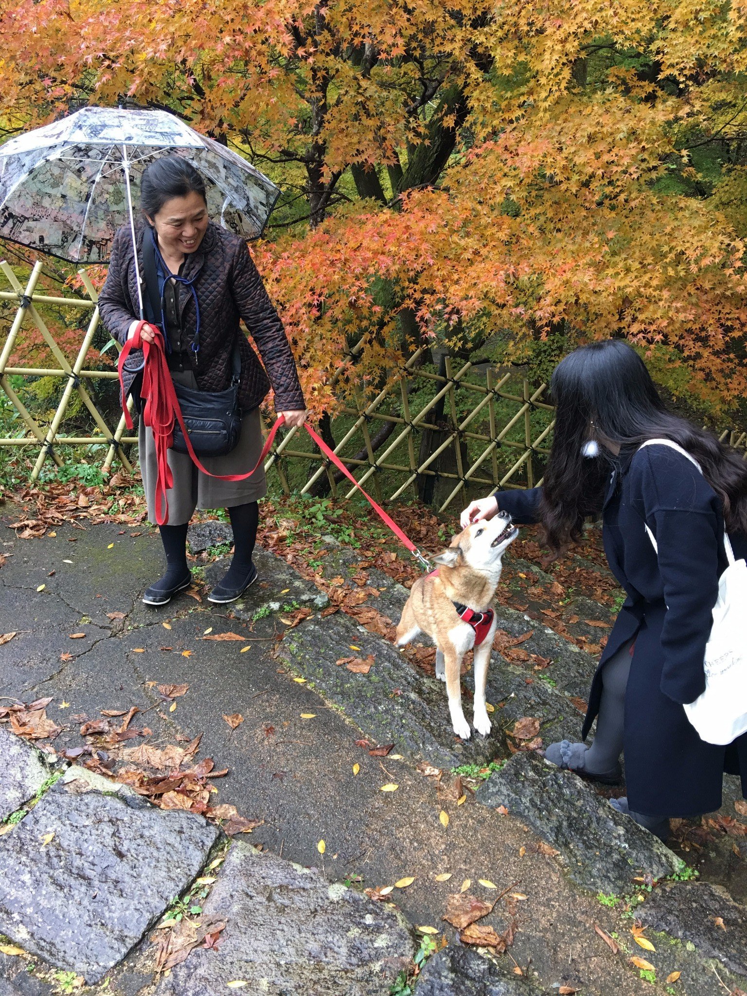 我们准备下山离开城墙的时候,媳妇邂逅了一只柴柴,它是和主人来爬山锻炼身体的