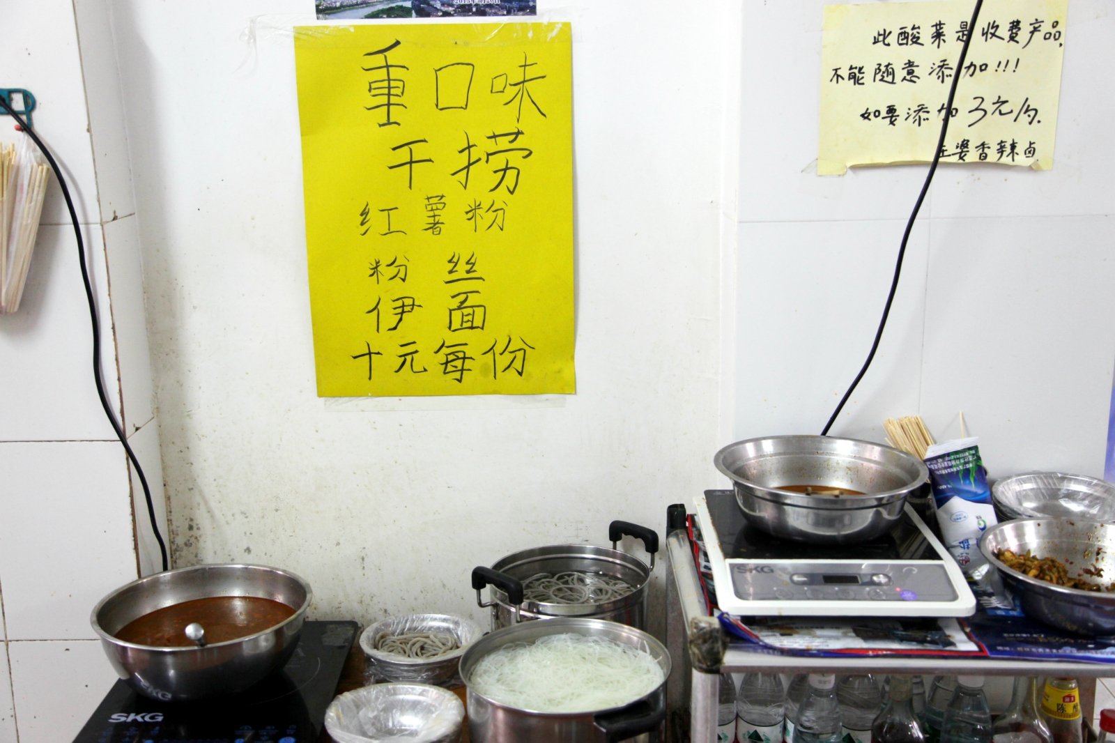 虽然到王婆打包外带的人很多,小店里是提供堂吃环境的。屋子里相比起其他卖麻辣烫的小店来说算比较干净简洁的。有7、8张小桌子,人多的时候会比较拥挤。店里有风扇没有空调,还是有一些过去的年代感。不过很多老店要的就是这种年代氛围,王婆迄今还没有开分店,一直手工传承,很喜欢这种亲切而又熟悉的好味道。