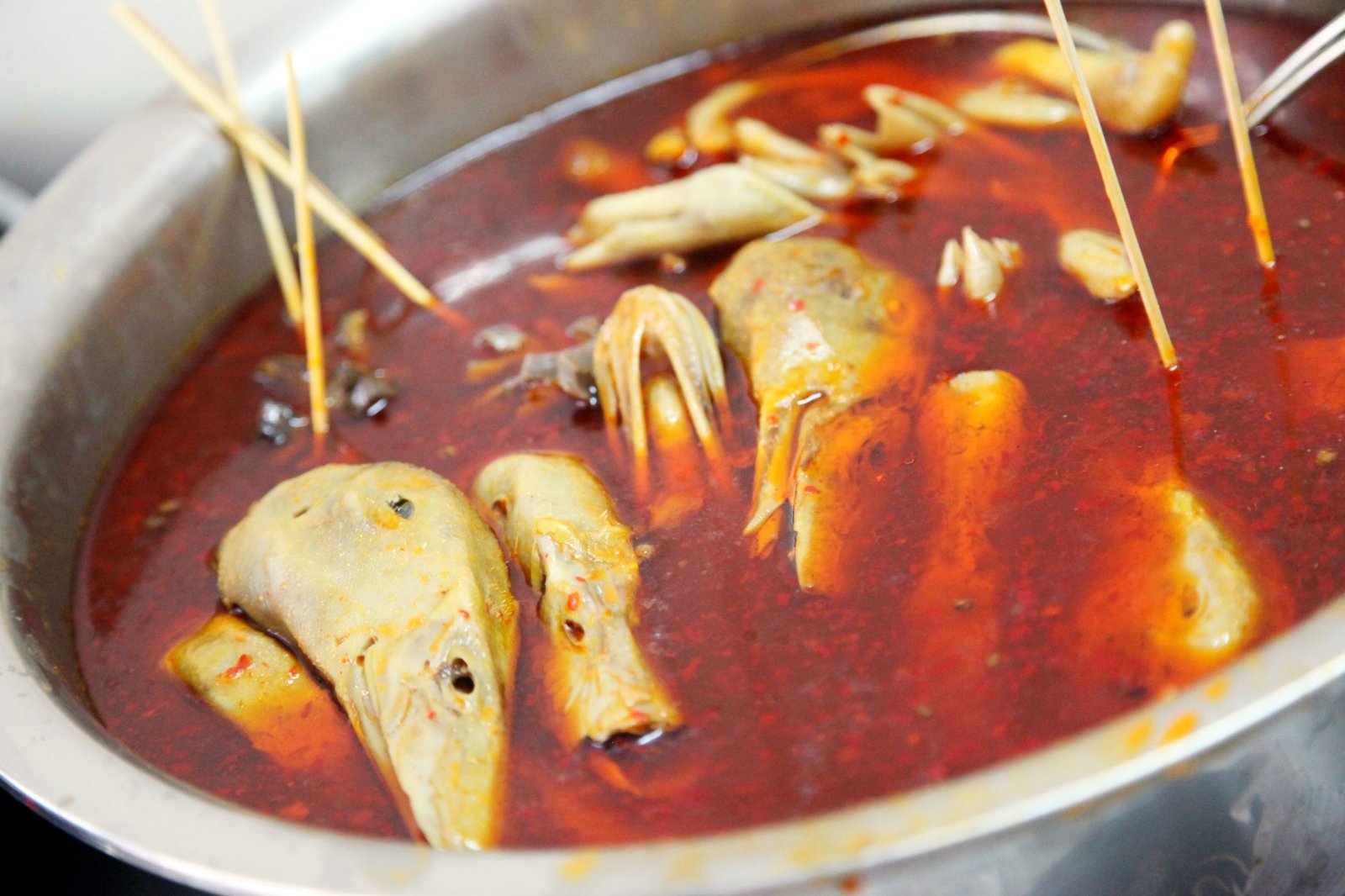 麻辣烫是食物的平民化归宿,所有食材被细细地穿在了签子上,一股脑儿地往滚汤里推,没有什么讲究的烹调过程,互相沾染了彼此的味道。而在王婆这边,这里的荤素锅是分开的,“牛”杂锅和“鸭”货锅是分开的,也让我明白了为何要摆上好几个大锅,就是要让每一种食物在“辣处里”的基础上,都能够尽量保持它的原汁原味。而不是像传统麻辣串一样,最后煮着煮着就变成整一锅只剩下“一种味道”了。食物本身的“香”味需要保留,王婆香辣卤中的“香”也许就是这样体现出来的。而且这样荤素分离,对于素食者来说,也是一种尊重。