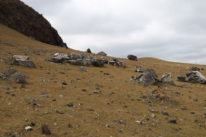 这一天早起的时候天气还不错呢,可惜越走越远天气越来越阴暗了。看不懂的蒙文,大概是砧子山的简介吧
