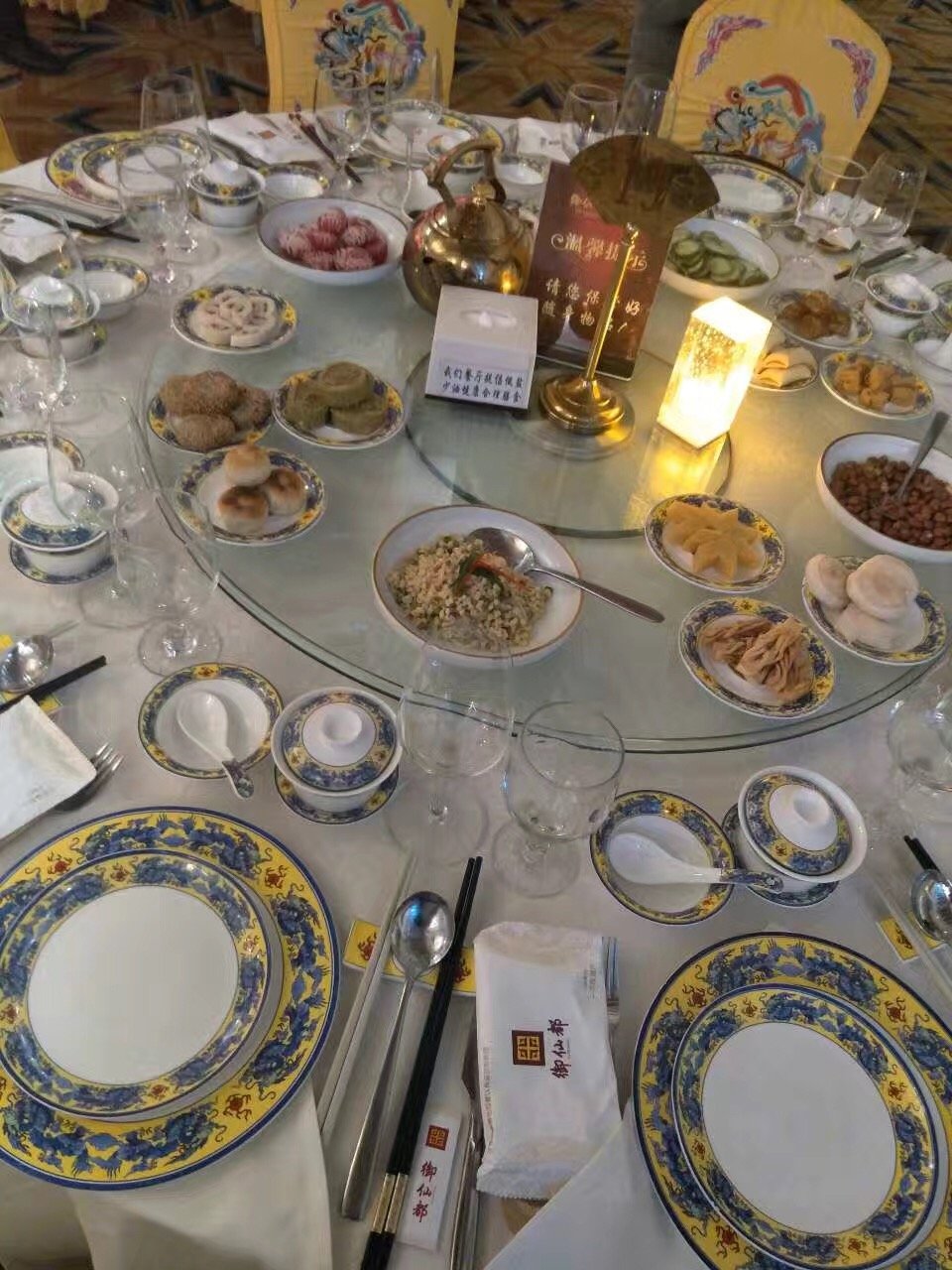 给家人过生日选的这个地方,说实话到了这个地方真的是大吃一惊,这应该是我吃过最高上的一家,吃的不仅是味道,更是环境和服务。先说着说这件店的位置吧,位于四季青桥南,我们是晚上去的所以没有太留意周边的环境,一般去的都是开车去的,也有地方停车,服务从停车开始,就感到非常好,来这的好车不少,可以过一过看车的眼瘾,我们提前打电话预定了座位,所以没有等位,这里面很安静,没有像一般的 餐馆吵吵闹闹的,服务员主动上来为我们服务态度非常好,餐馆是一个博物馆的样子,所以除了吃饭以外,餐馆餐馆也是一大亮点,服务员还会耐心的为我们介绍,问的问题都会一一回答,这一点弄得我们都有点不好意思了,觉得自己比较烦和啰嗦,不过服务依然很好,说是来吃的服务的一点也不假。因为是个皇家菜,所以除了餐厅装修和博物院一样外,餐具也尽显皇家风格,餐桌餐具都是高大上的风格,每一个包间都显得大气。前面的服务都那么好,点餐时的服务自然也就不用多少,一点毛病也挑不出来。还有一些助兴节目,让人吃着很开心,而且非常适合老人。这家餐厅的人均消费在500元左右,适合家庭聚会或者公司聚会,如果个人前来的话还是有些小贵的。每一道菜都有特的故事,其实感觉菜的味道一般,但是意境很好,推荐一道豆腐吧,他家的豆腐感觉还是不错的。