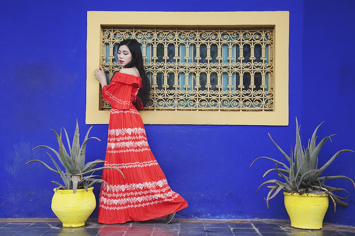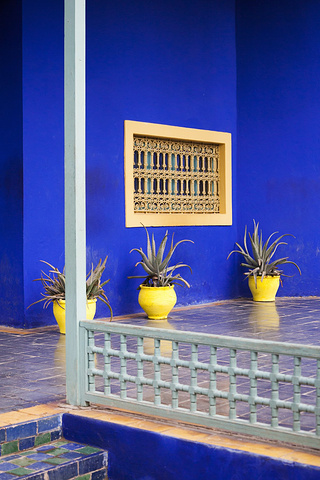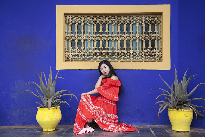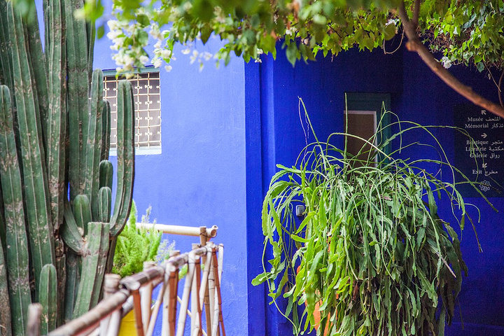 第一站是马约尔花园~ 马拉喀什的马约尔花园是这个城市最有魅力的地方,创始人马约尔用毕生精力设计建造它,第二任主人是大名鼎鼎的Yves Saint Laurent,没错就是YSL!他们在这里生活了三十年,最后埋葬在这里。花园的色彩让人感受到艺术家缤纷的内心,尤其是独特的蓝色别墅,被称作“马约尔蓝”。