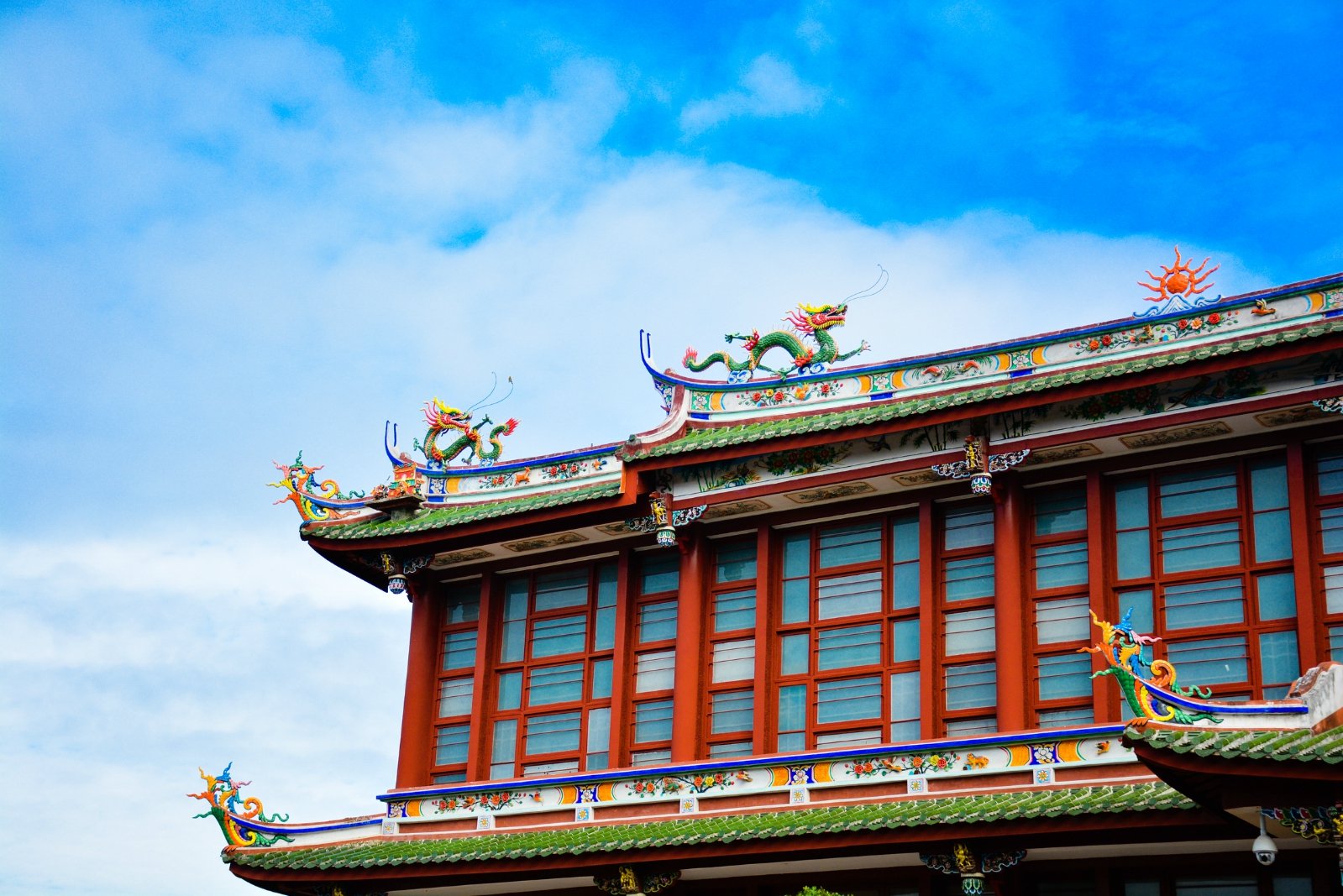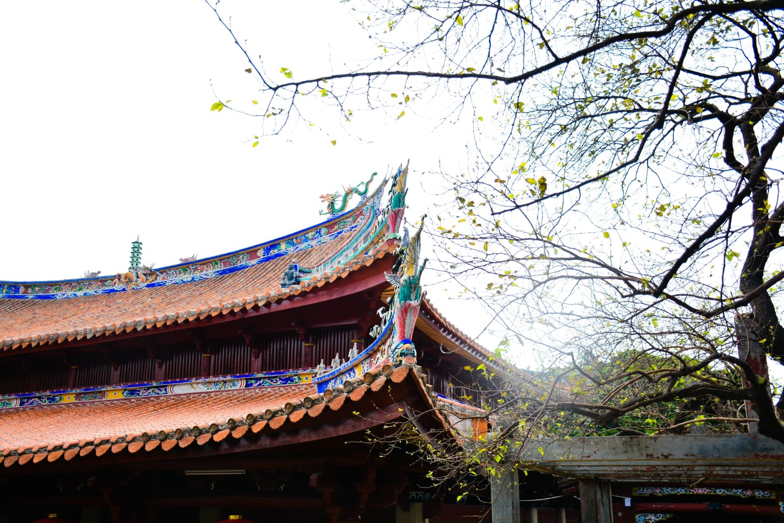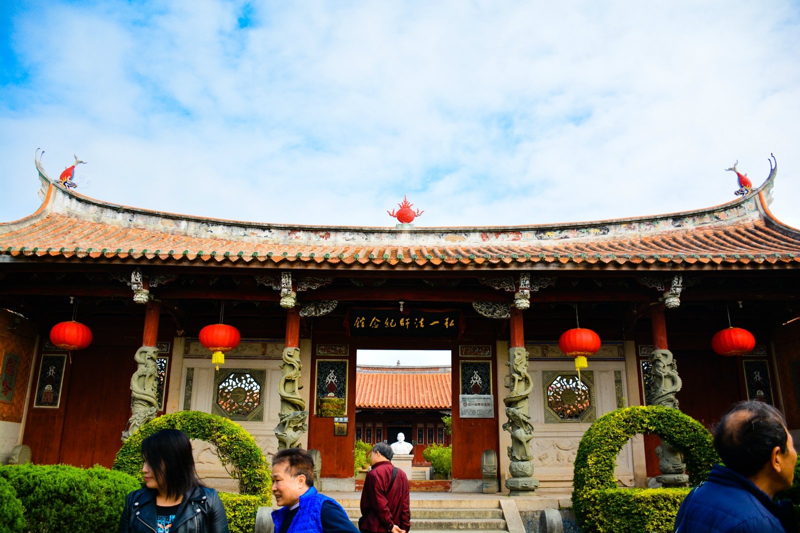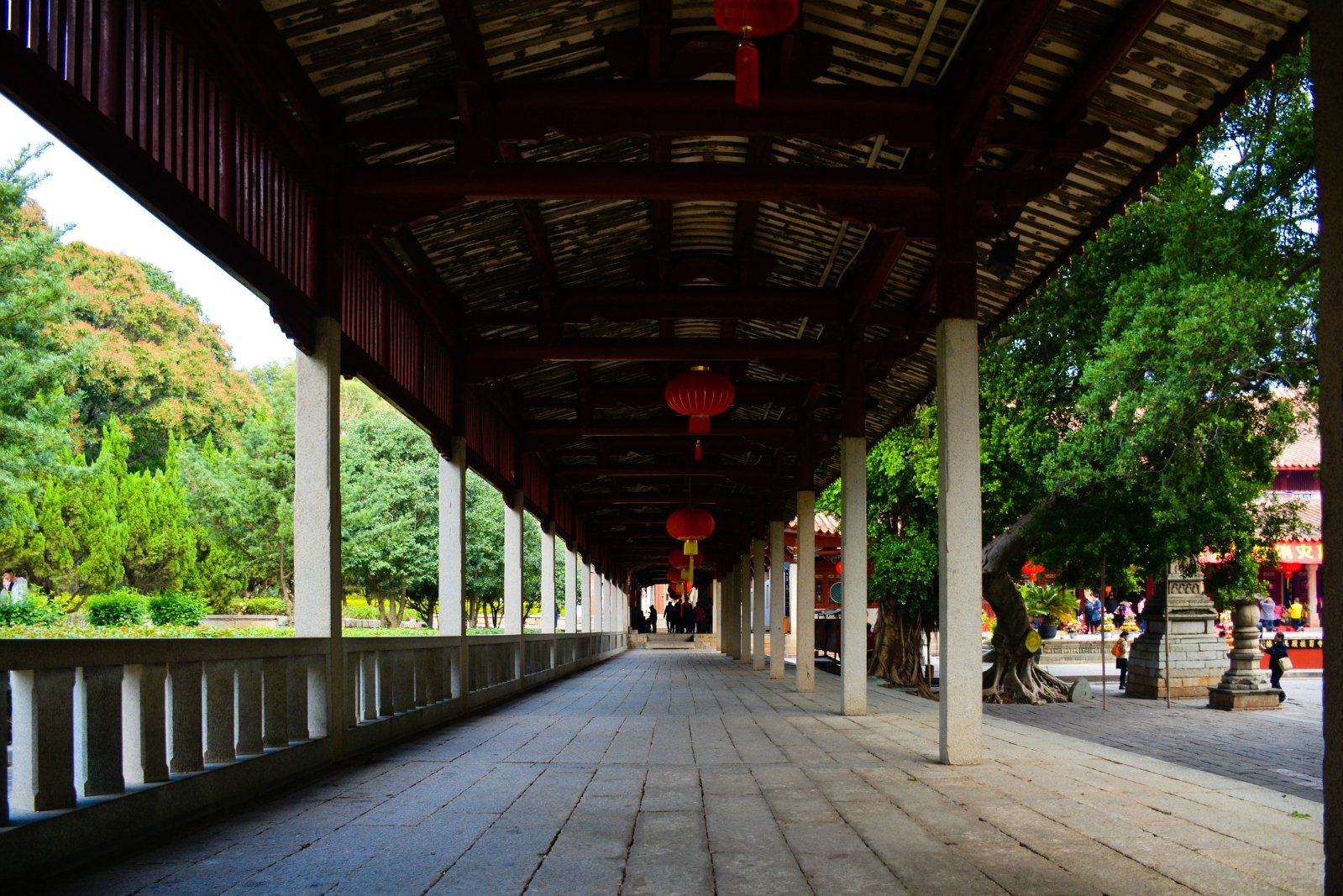 走入山门后,是长长的拜亭,拜庭两旁古榕参天,通道内悬挂宫灯。