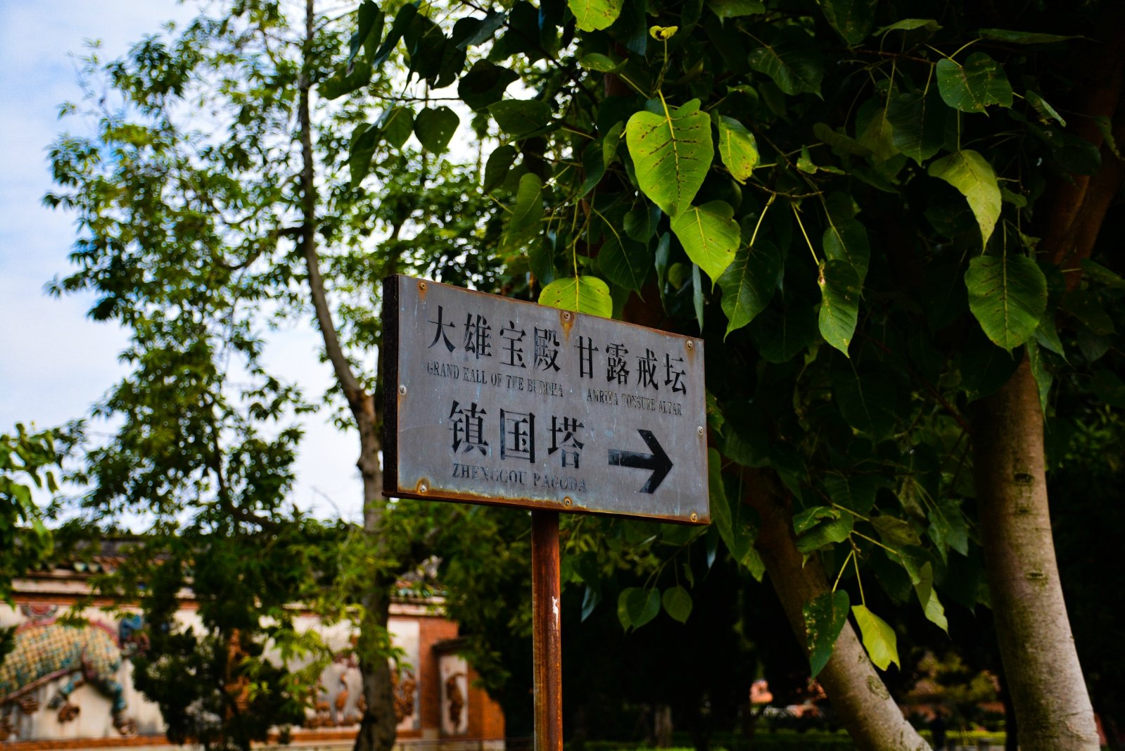 在往前就是大雄宝殿。大雄宝殿雕塑技术高超,尤其是粱槽间的24尊飞天乐伎,在中国国内古建筑中罕见。殿前月台须弥座的72幅狮身人面青石浮雕,殿后廊的两根古婆罗门教青石柱,同为明代修殿时从已毁的元代古印度教寺移来。大殿内用近一百根海棠式巨型石柱支撑殿堂,俗称"百柱殿",殿内供奉的五方佛像,法相庄严,是汉地少有的密宗轨制。