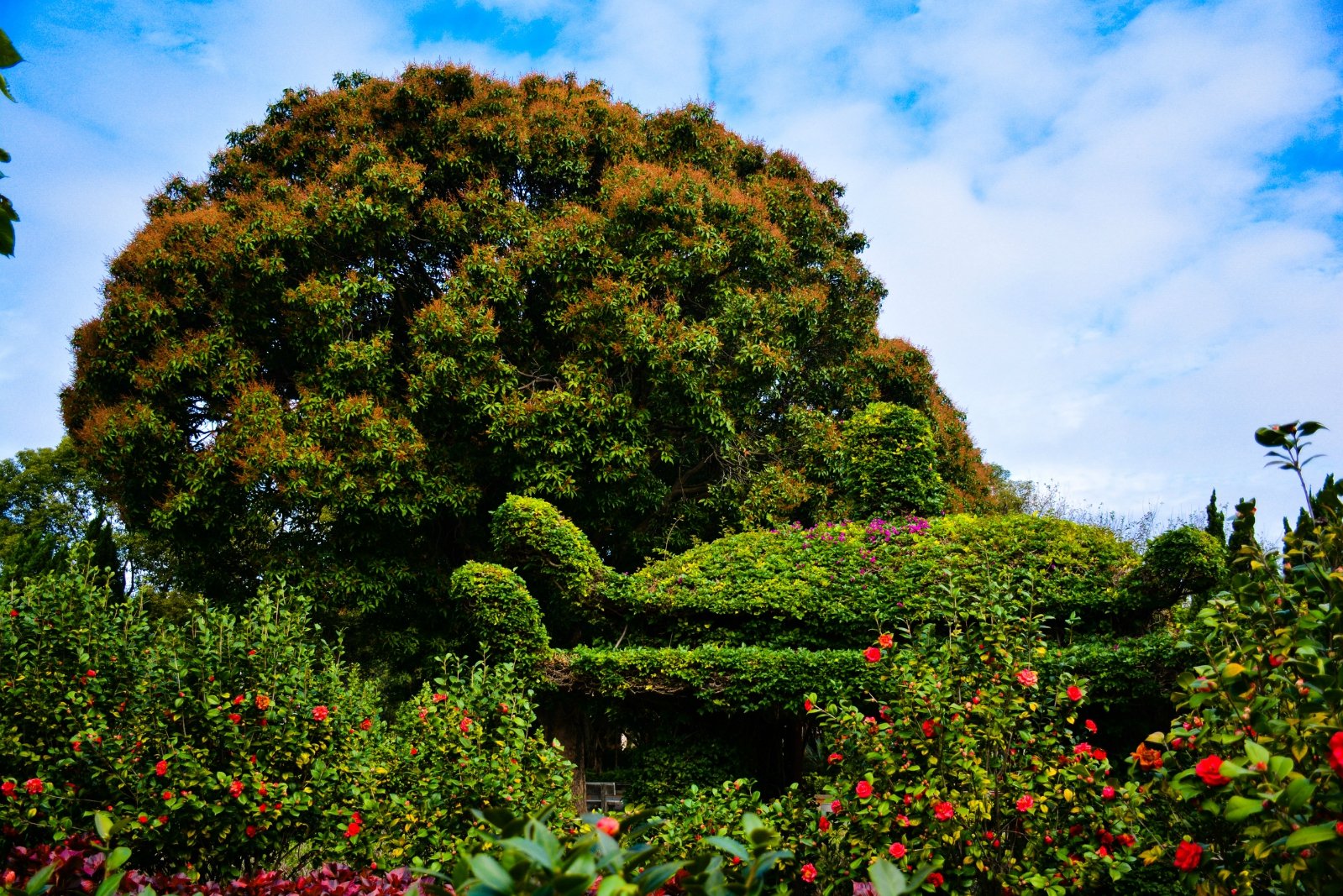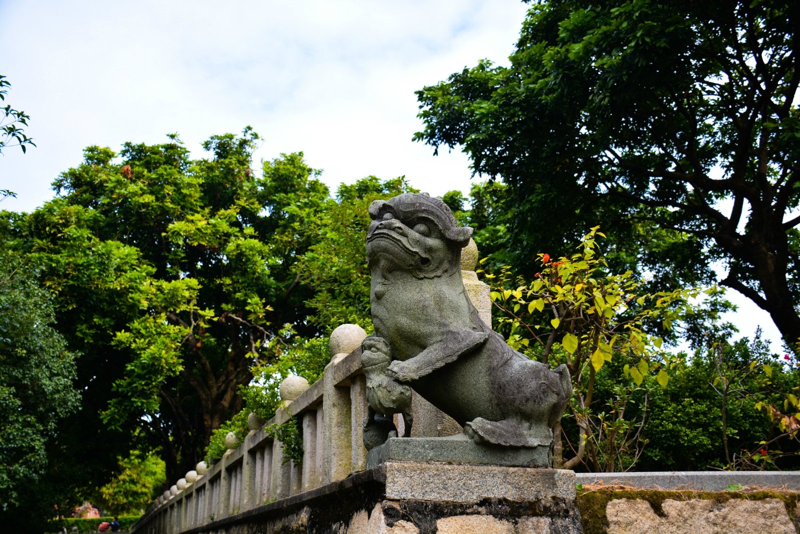 寺内繁花锦簇,树木郁郁葱葱,石狮子也特别的有趣。