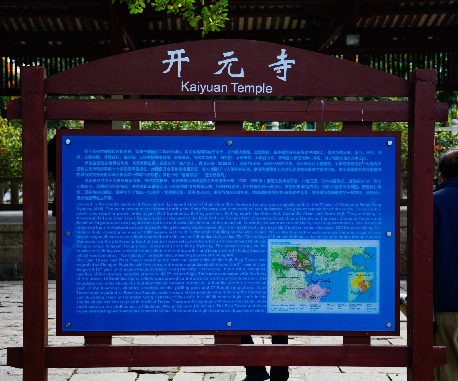 而作为开元寺标志的东西二塔,这趟来,刚好在维修,没能见到全貌,可惜来,这两座塔都距今已有1000多年历史了。开元寺双塔是中国最高的一对石塔,经明万历年间泉州八级地震以及多次台风的考验,仍屹立不倒。双塔塔身浮雕精美。