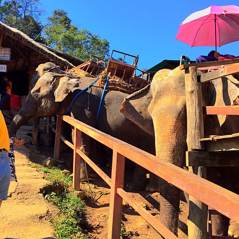 看完表演要去骑大象啦~ 两人一个象,前面有“司机”骑在大象脖子上拉着我们。 骑大象的时候也要准备点零钱,给大象买甘蔗吃。 大象驮着我们在山涧里行走,下坡的时候真的要吓死了!快90度了 感觉要掉下来一样!在大象背上拍照的时候一定要拿好手机!手机只要掉下去就捡不回来了 大象从山上下来还会在水里走,四周环山的感觉不能更好! 进山里一定要准备墨镜🕶️ 不怕麻烦的穿上防晒服!因为特别晒!!