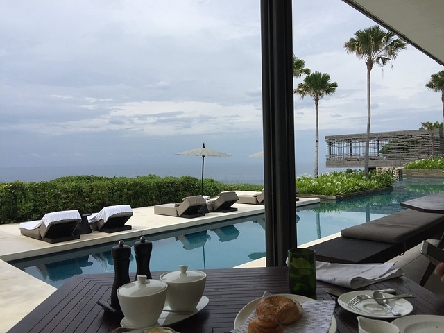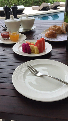 CIRE(评分:四星半)【满分五星制】 地址: Alila Villas Jl. Belimbing Sari, Uluwatu, Alila一共有两间餐厅,这间Cire是西餐厅+早餐厅,The Warung才是印尼餐厅,看到有人弄混的,特此纠正一下。 说实话这间餐厅算是彻底颠覆我对酒店餐厅的认知,以前总觉得酒店餐厅贵又难吃,而这间西餐真的综合实力还不错,不论环境、味道还是服务。 因为地理位置问题所以平时除非包车出去玩,只能在酒店解决,几天吃下来的感触是,的确有几个招牌菜,池边早餐,丰盛美味,景致好!惬意! 特别推荐: 1、肉眼牛排,比之前在佛罗伦萨吃到的招牌牛排还要好吃~ 2、巴基斯坦小白菜浓汤,之前从来没觉得蔬菜原来可以做得好吃 其他的主菜比如大虾,牛肋排什么的也还不错 唯一不足就是分量稍小,不过西餐分量也从没见过大的啦,反正对于大胃王来说一个主菜一个前菜一个沙拉肯定是吃不饱的~还得再点些其他的,除了略微有一丢丢贵之外也没有什么好挑剔的。
