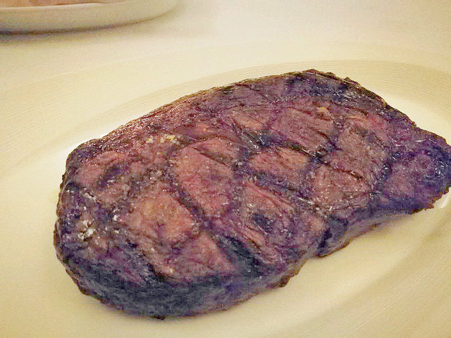 肉眼牛排,两人份~黑椒汁蛮入味的~有点像烟熏出来的感觉,肉质很嫩,不错!