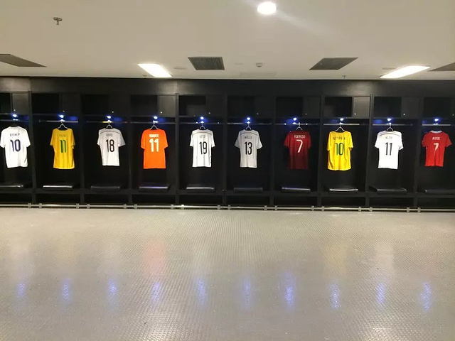 球员更衣室~挂着巴西国家队队员们的球衣~