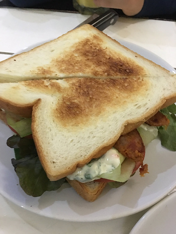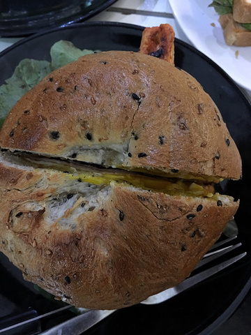 SPA结束,12点了,雨也停了,孩子们在酒店也呆腻了,坐在泳池边玩IPAD。午饭时间到了,我们决定去Trip Advisor上排名第一的咖啡馆,是排名全清迈第一哦,The Hideout次饭。咖啡馆离塔佩门不远,把泰文地址给双条师傅,不过貌似知名度不高,师傅看了半天,又掏出地图查了查,最后把我们拉到店子所在的小巷,都过了才停下,告诉我们就在附近了,自己走过去吧😄。 拿出手机导航,直走再左拐,这条小巷破破烂烂的,都是一些棚户😄,终于到了,门面可是相当小,木有环境可言。小小的店面倒是坐满了,全是金发碧眼的鬼佬,等了10分钟有位子了,很小的桌子,只好挤挤。用餐全程吃完一份立马要服务员收掉盘子,不然后上的摆不了😄。厨房也是很小,所以这里应该是中央厨房配餐,再简单加工一下的。吃的也就是快餐,三文治,有三种面包可以选,bagel, 方面包片或法棍。馅料有以清迈香肠为主的,此为该店招牌,或者鸡肉,火腿,烟熏三文鱼等。另有沙拉、薯条、酸奶、巧克力布朗宁、时令水果smoothie、咖啡等,从menu到口味木有特殊的,我们点的主食味道正常,但这种品质很多国外西餐厅都有,沙拉不好吃,里面的山羊奶奶酪味道很淡、蔬菜的品种也不是我们喜欢的,酸奶更是难以下咽,虽然没有加糖是健康的,但好酸好酸。咖啡有的网友评价很赞,对我来说很一般,一般的记不住味道:无论摩卡、拿铁或是可塔朵。小盆友的芒果菠萝smoothie也就普通水准,布朗宁很甜,一叉就碎。价格中上。我们用餐期间,还有老外在等位,也是被Trip Advisor忽悠来的吗? 总之,如果你恰好要去古城、恰好在塔佩门附近愿意走10分钟路、恰好在饭点,那么可以选择这里,点三明治就好,如果特意找过来,真是浪费时间。