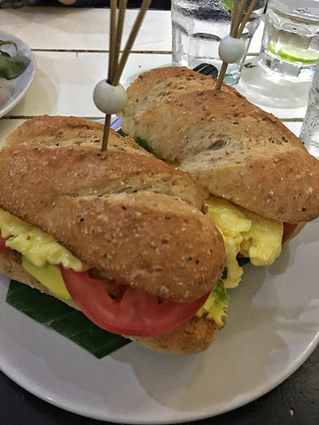 法棍夹的,里面西红柿、生菜、牛油果、鸡蛋